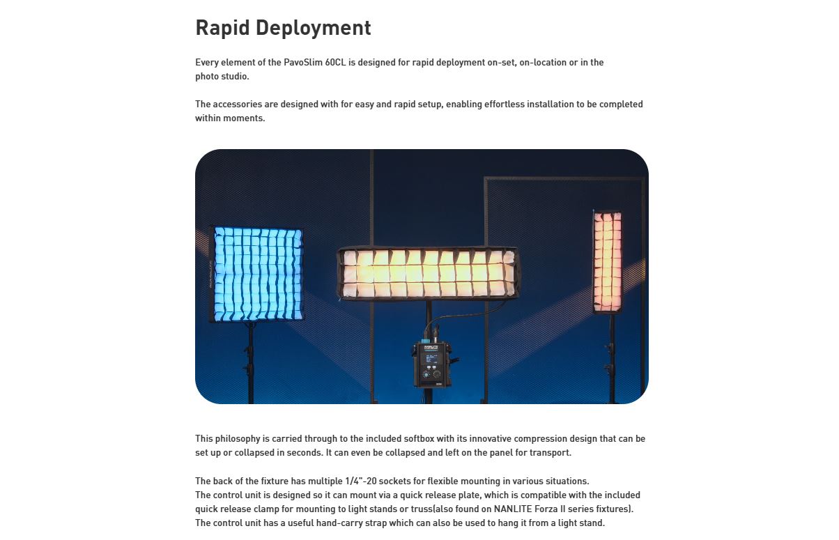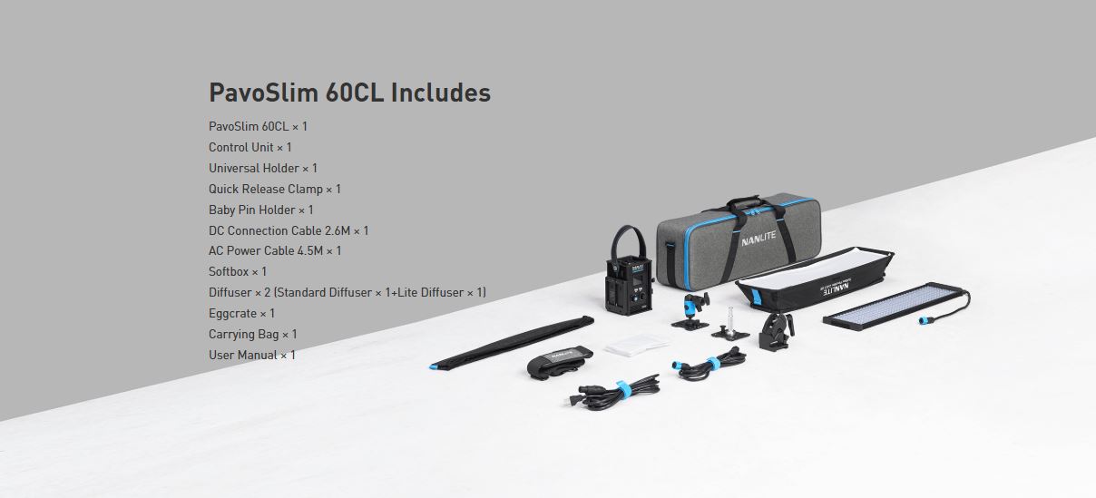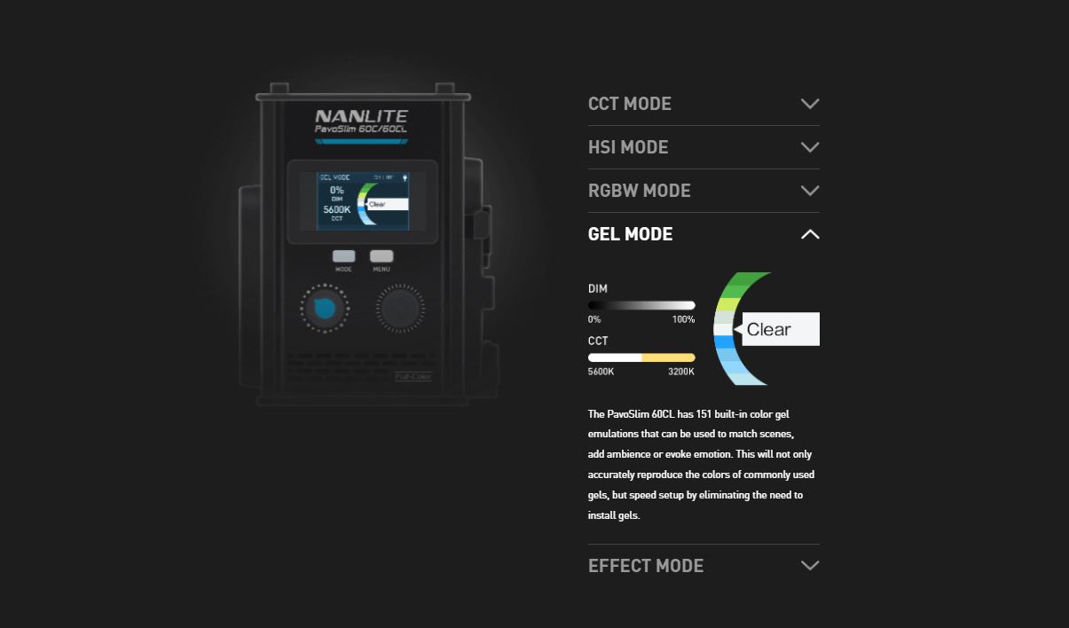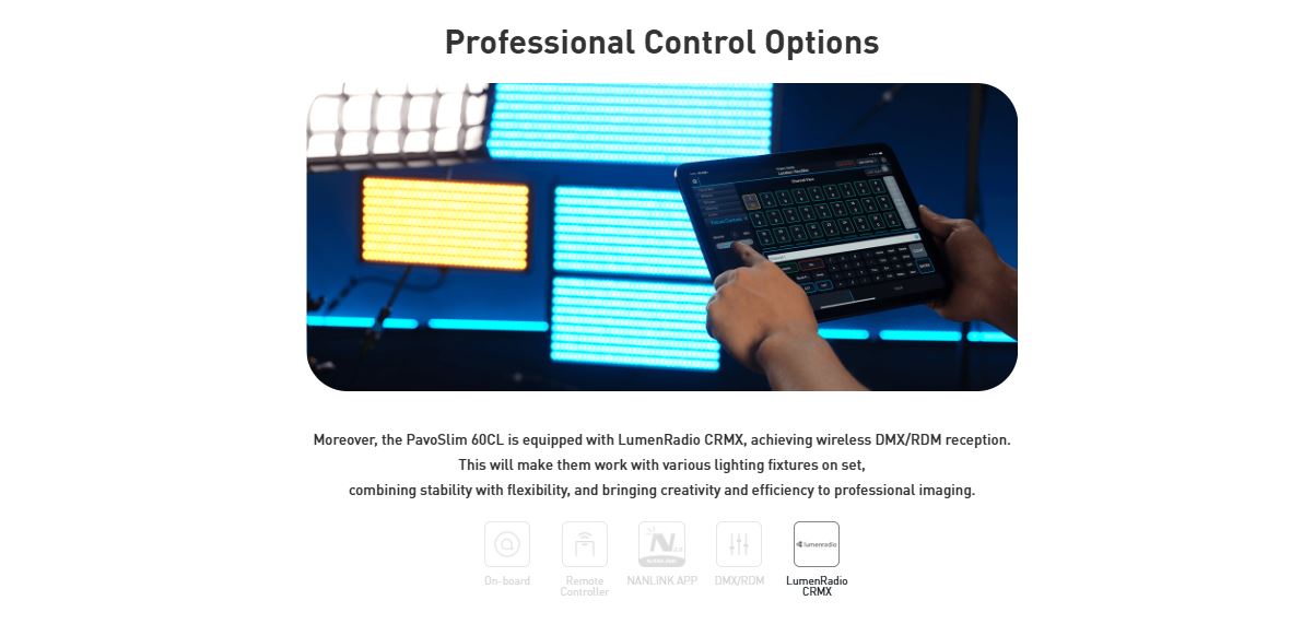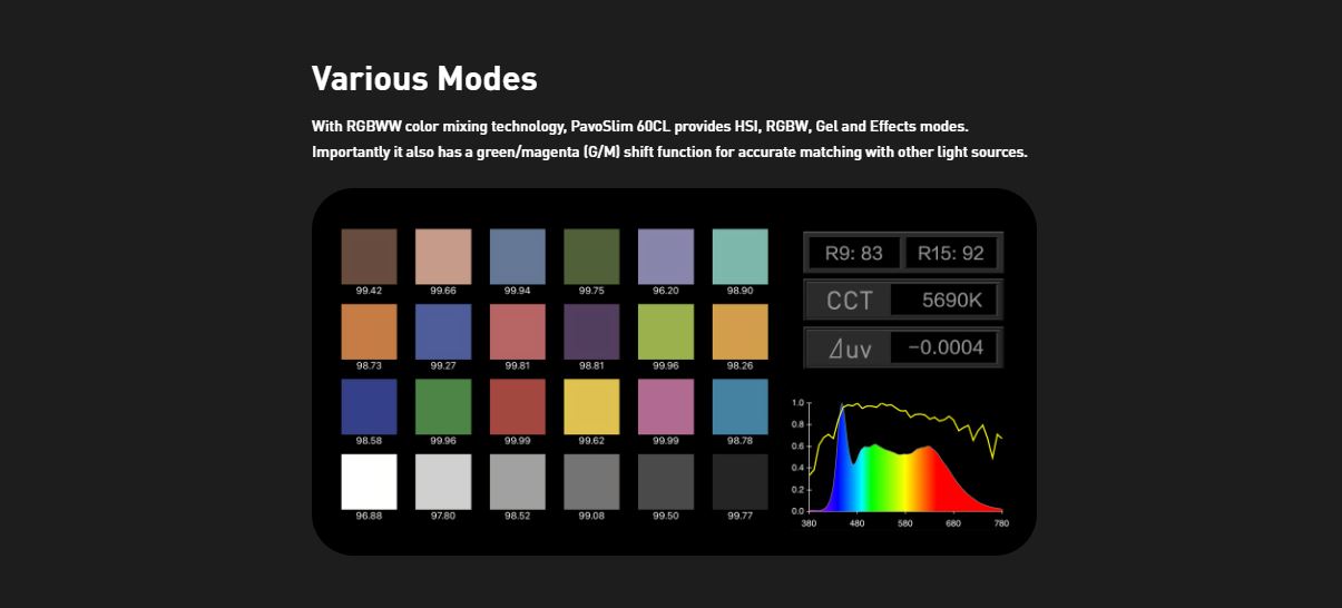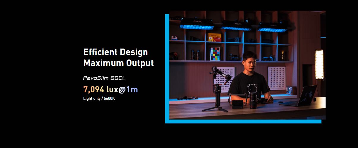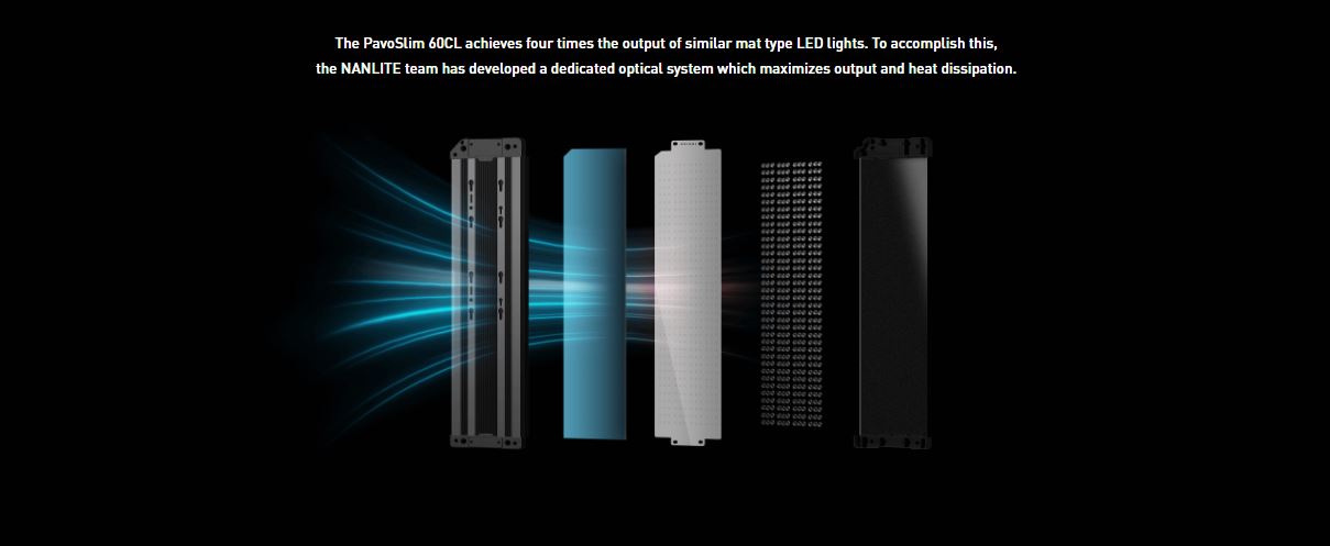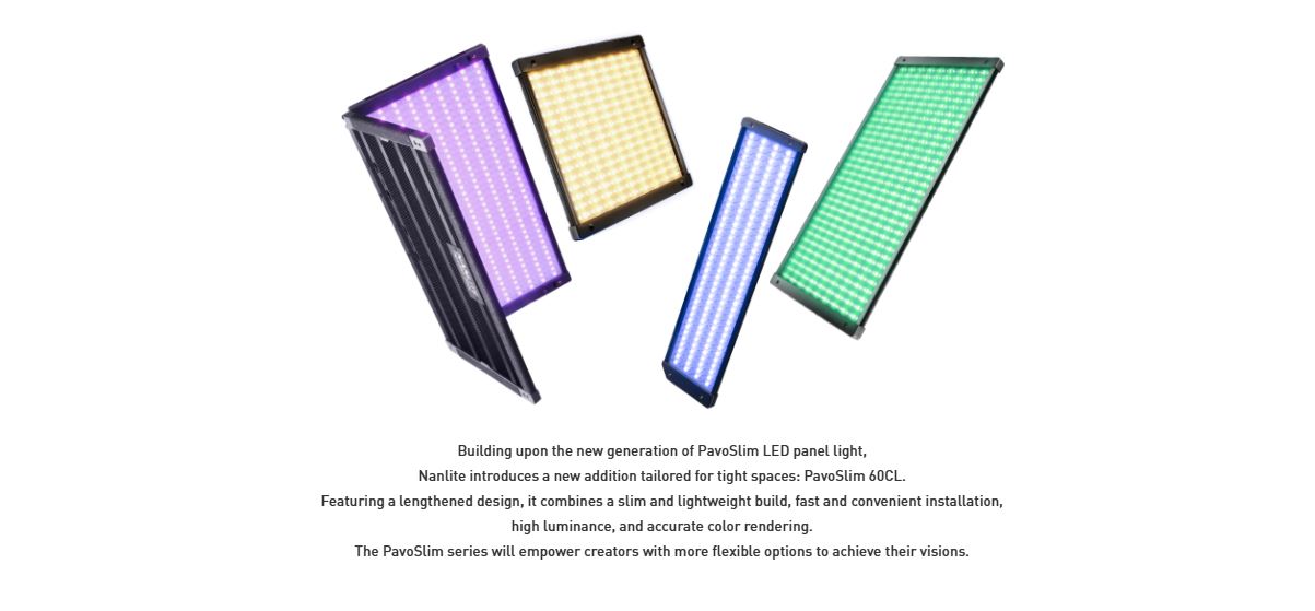 NANLITE PavoSlim 60CL LED RGB Panel Light 151 Gel Filter Presets 7094 Lux at 3.3′ (5600K) DMX/RDM & Bluetooth App Control Silent Passive Cooling Design