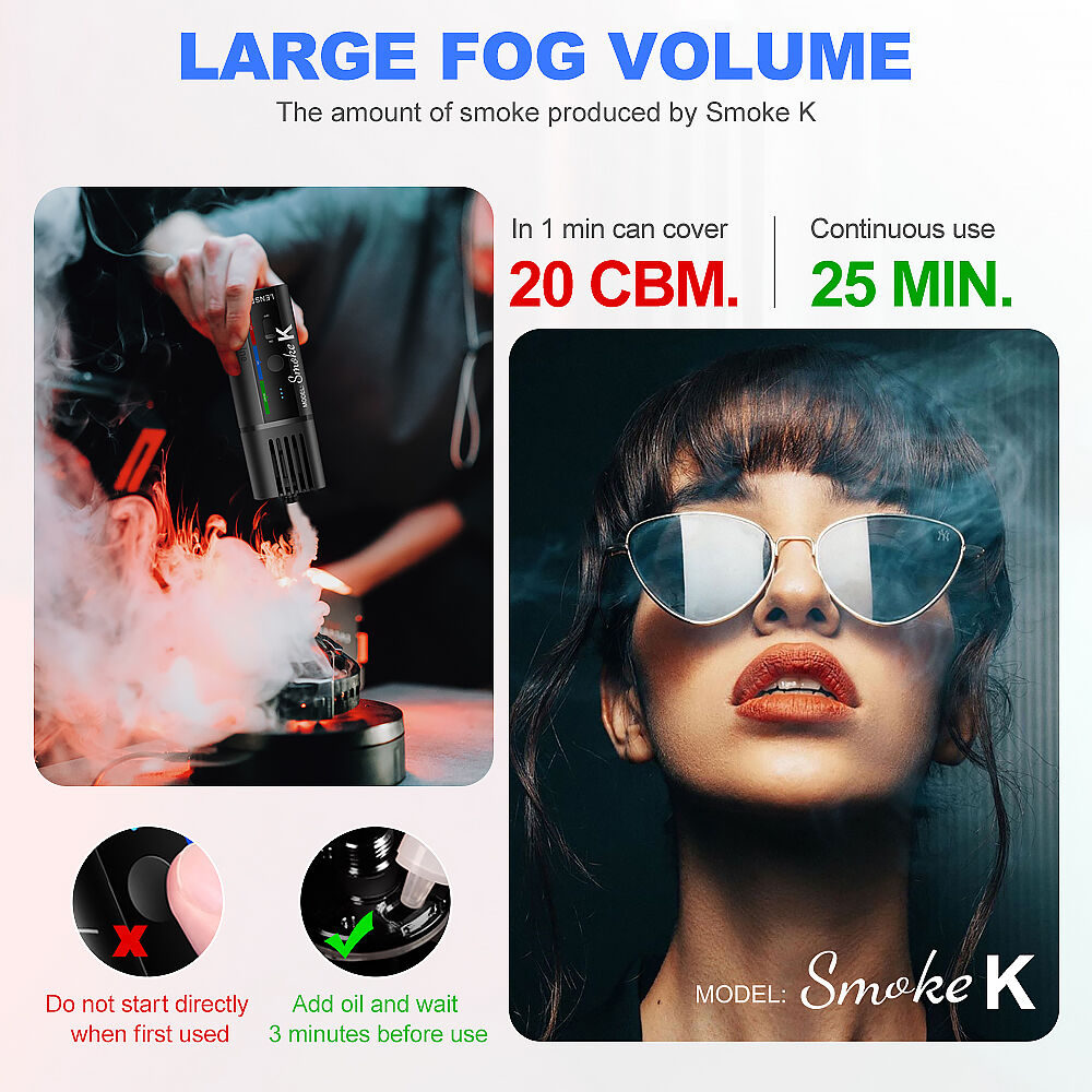 Dense Fog, Dry Ice, and Steam Effects Up to 25 Minutes of Smoke Output Includes One 60 mL Bottle of Smoke Fluid Includes Wireless Remote Control