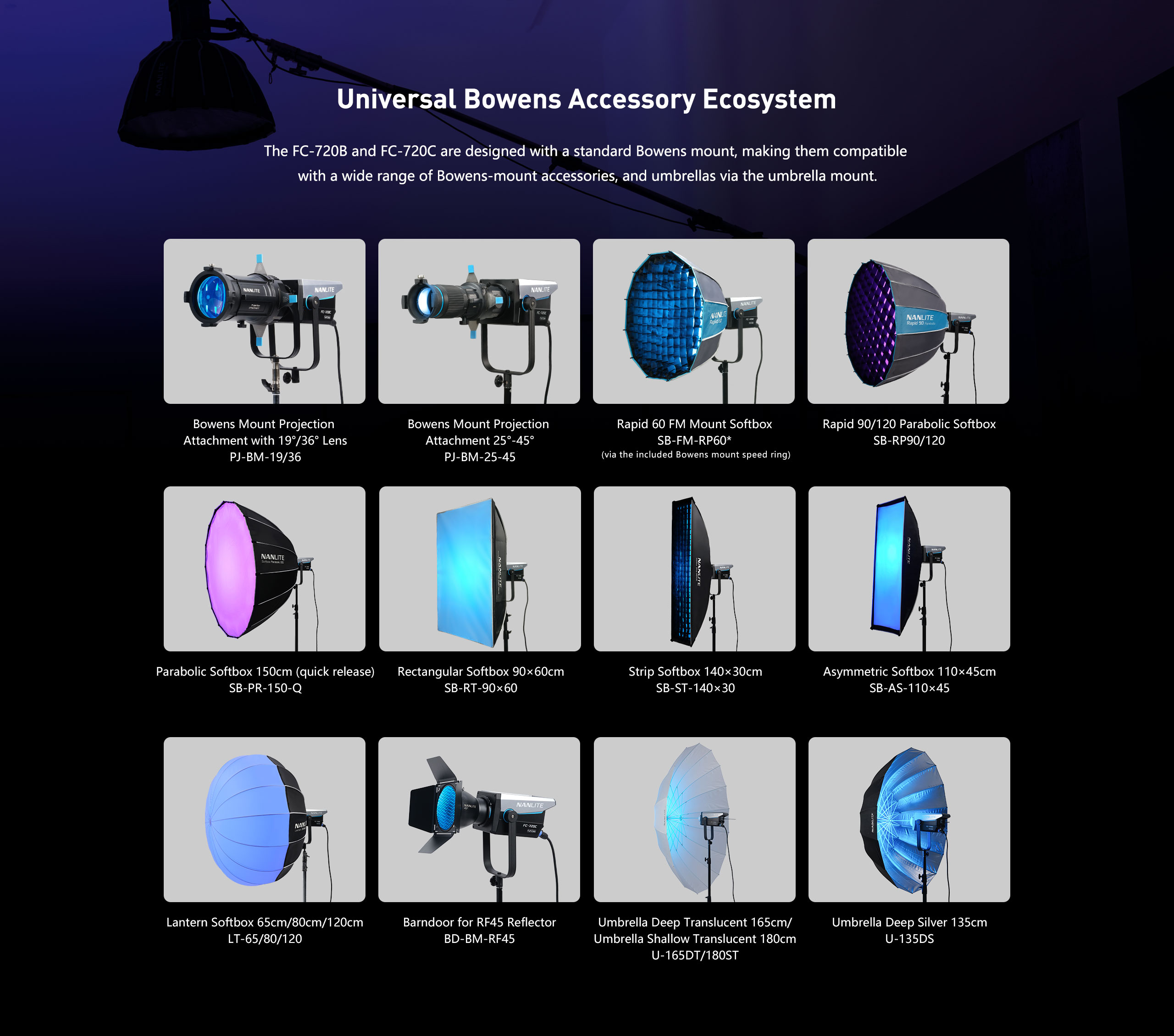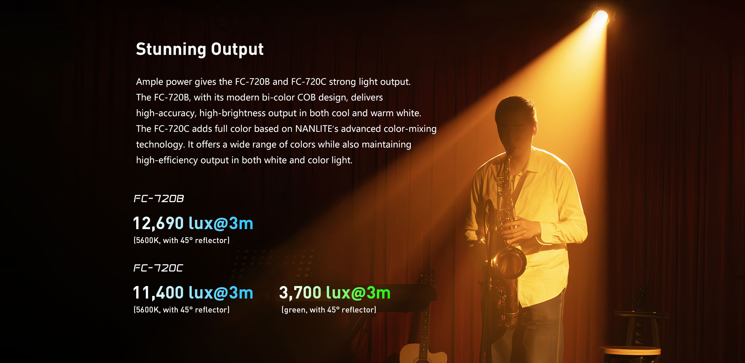 NanLite FC-720 Bi-Color LED Spotlight 12,690 lux (3m) (Nanlink app), 2.4G, or DMX/RDM 0-100% dimming in 0.1% 2700K-6500K 2 year warrenty