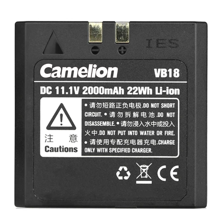 Camelion VB-18 Overview Keep your VING series flash powered up by picking up a spare VB-18 Li-Ion Battery Pack from Camelion. This battery is rated to 11.1V and 2000mAh for a capacity of 22Wh, allowing it to produce about 650 full-power flashes with the V860 series flashes.