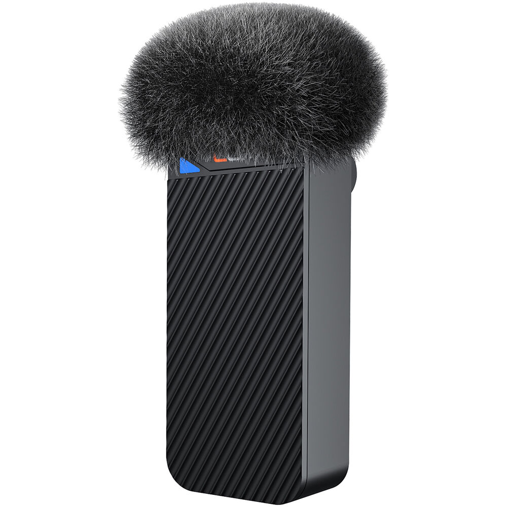 For vloggers and content creators, the black Comica Audio Vimo C3 Mini 2-Person Wireless Microphone  is a wireless system with two transmitters with built-in microphones and one dual-channel receiver as well as a charging case to carry them in. It delivers reliable transmission with a 20 ms latency up to 656′ via 2.4 GHz wireless band directly to your camera, mixer, or smartphone with a 3.5mm port. Easy-to-use with plug-and-play operation, this system offers a complete solution for recording interviews with two subjects. Each device comes with a back clip to attach to your subject or to your camera’s shoe mount. Internal lithium-ion batteries power all components and included USB-C cables can charge them back up once depleted in just two hours. Two furry windscreens can be attached to either transmitter to reduce wind interference. The included charging case extends the battery life of each component by 20 hours.