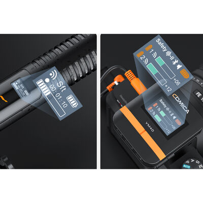 Easily transition from 2-person run-and-gun interviews to mic-mounted podcast recording with the upgraded Comica Audio VM40 COMBO 2-Person Wireless Shotgun Microphone System. The 2-person system includes two shotgun microphone transmitters and a clip-on receiver. The transmitters can be used in both wired and wireless configurations and feature a 3.5mm TRS/TRRS auto-recognition output and USB-C port for both analog and digital recording. Displays on each unit allow you to monitor your connection status, and its capable of transmitting from up to 656′ away. Included with the system are cables to maintain compatibility with mobile devices, computers, and audio recorders.