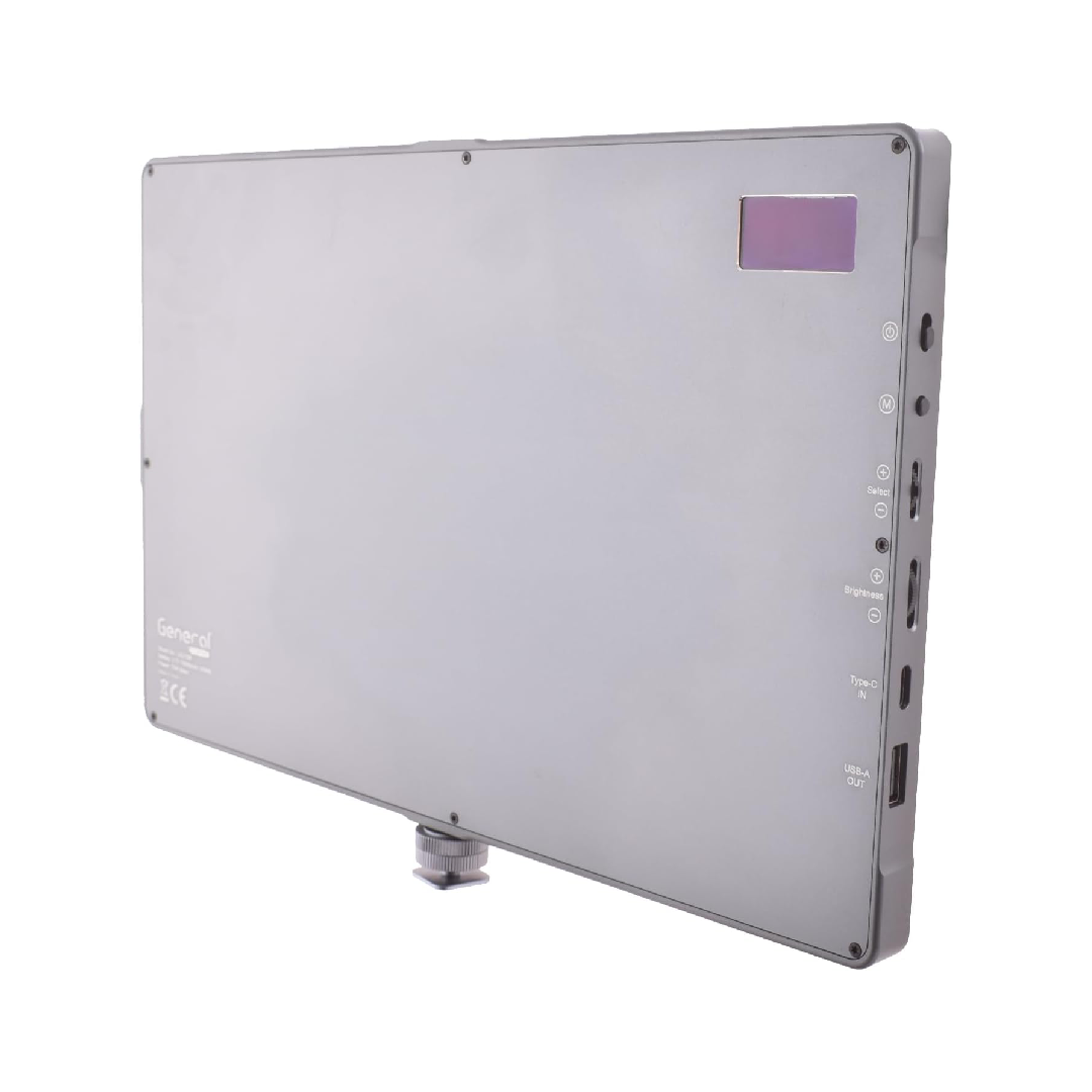 A General LED72BI Video LED light is a portable lighting device used to illuminate subjects in video recording and photography. It typically consists of an array of LED bulbs that emit a bright, continuous light. Video LED lights are adjustable in brightness and color temperature, allowing users to customize the lighting to suit their needs. They are commonly mounted on cameras or tripods and are powered by rechargeable batteries or AC adapters. Video LED lights are essential tools for creating professional-looking videos and photos in various settings, such as studios, outdoor locations, or events. Color Temperature : 2500K-9900K Brightness Control : 1%-100% Max. Brightness / Illuminance : 2800 Lux @0.5m (5600K) Max. Power : 72W Color rendering index : 96+ Battery Capacity : 3.7V 70000mAh Charging/Input Power : 5V/3A 9V/2.67A 12V/2A USB-C Output: 5V 2A USB-A