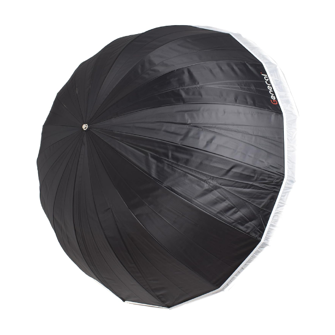 General Au48Sh Parabolic Umbrella With Diffuser 105cm Deep Parabolic Umbrella with Diffuser redefines professional lighting, offering a soft, deeply focused light perfect for studio and portrait photography. This meticulously designed umbrella combines a reflective silver interior with a front diffuser, ensuring your subjects are illuminated with a gentle, Parabolic Umbrella 105Cm even light that flatters and enhances. Key Features: Optimal Size for Versatility: The 105cm diameter is perfect for individual portraits and small group shots, providing ample coverage and soft, natural-looking light. Silver Interior with Diffuser: Maximizes light efficiency for brighter, more vivid images while softening shadows and reducing glare. Deep Parabolic Design: Focuses light for greater precision and control, allowing for creative lighting setups that elevate your photography. Durable and Portable: Crafted from high-quality materials for durability, with a collapsible design that makes it easy to transport and set up anywhere. Universal Compatibility: Designed to work with a variety of lighting systems, making it a versatile addition to any photographer’s toolkit. Enhance your photographic lighting with the General 105cm Deep Parabolic Umbrella with Diffuser for beautifully lit, professional-grade results.
