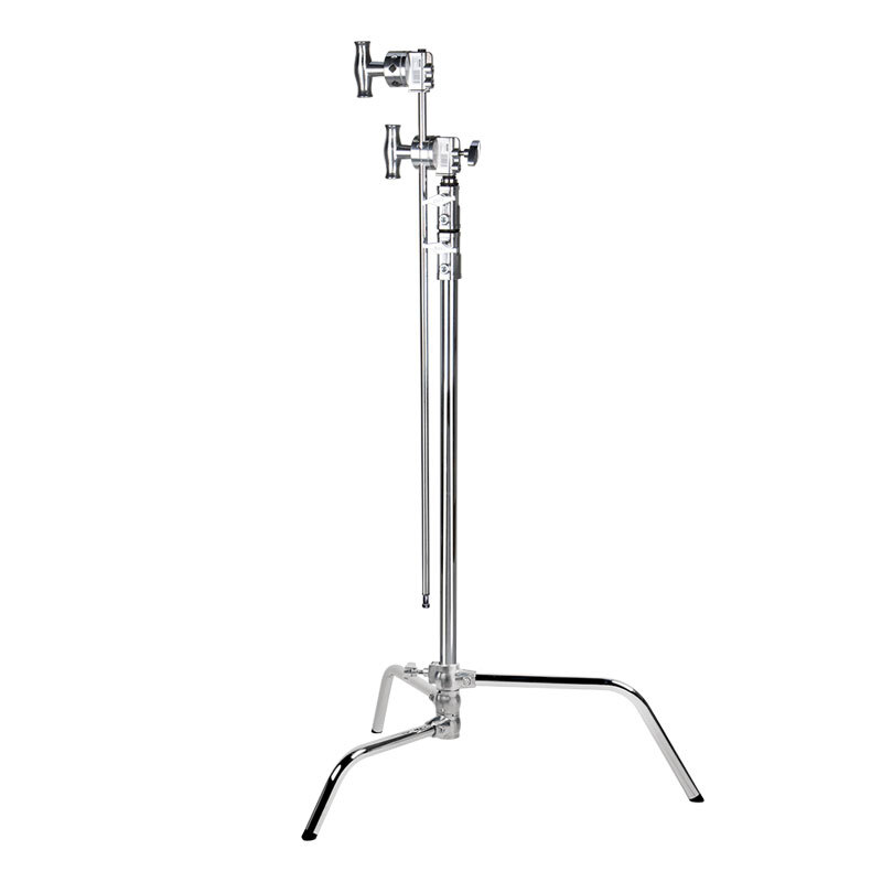 The Kupo 40″ master C-stand with sliding leg kit & quick-release system is the latest addition to the Kupo C-stand family. This kit includes a 2.5″ grip head and 40″ grip arm with hex stud and features a patent-pending design that allows for quick set-up and a sliding leg for an incline or uneven terrain. Just unlock the knob of the longest leg so that all the legs can be swung to the correct position in seconds. While the longest leg is leveling the stand and the spring-loaded locating pin is engaged, the middle leg remains securely in place minimizing any possibility of the stand tipping over if accidentally hit. The CL master C-stand sliding leg quick release provides quick set-up, safe and solid support.