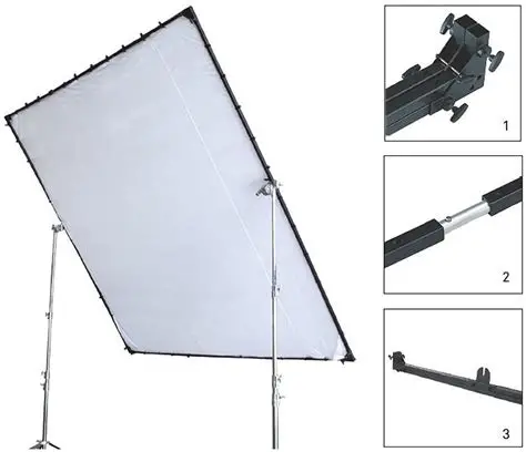 The Kupo Butterfly Frame Kit is a versatile solution for controlling light on set. The kit includes a heavy-duty 12ft x 12ft butterfly frame made of 30mm square section aluminum tubes, which can be easily locked together and disassembled for storage and transportation. Ear type frame supporters (FH10) are provided for mounting the butterfly frame on the stands allowing for a stable frame for silks, scrims, etc. This 12′ x 12′ butterfly frame kit can also make an 8′ x 8′ and a 4′ x 4′ frame. Whether you need to lower contrast or match ambient light intensity, this kit has everything you need to construct a reliable frame for nets or silks.
