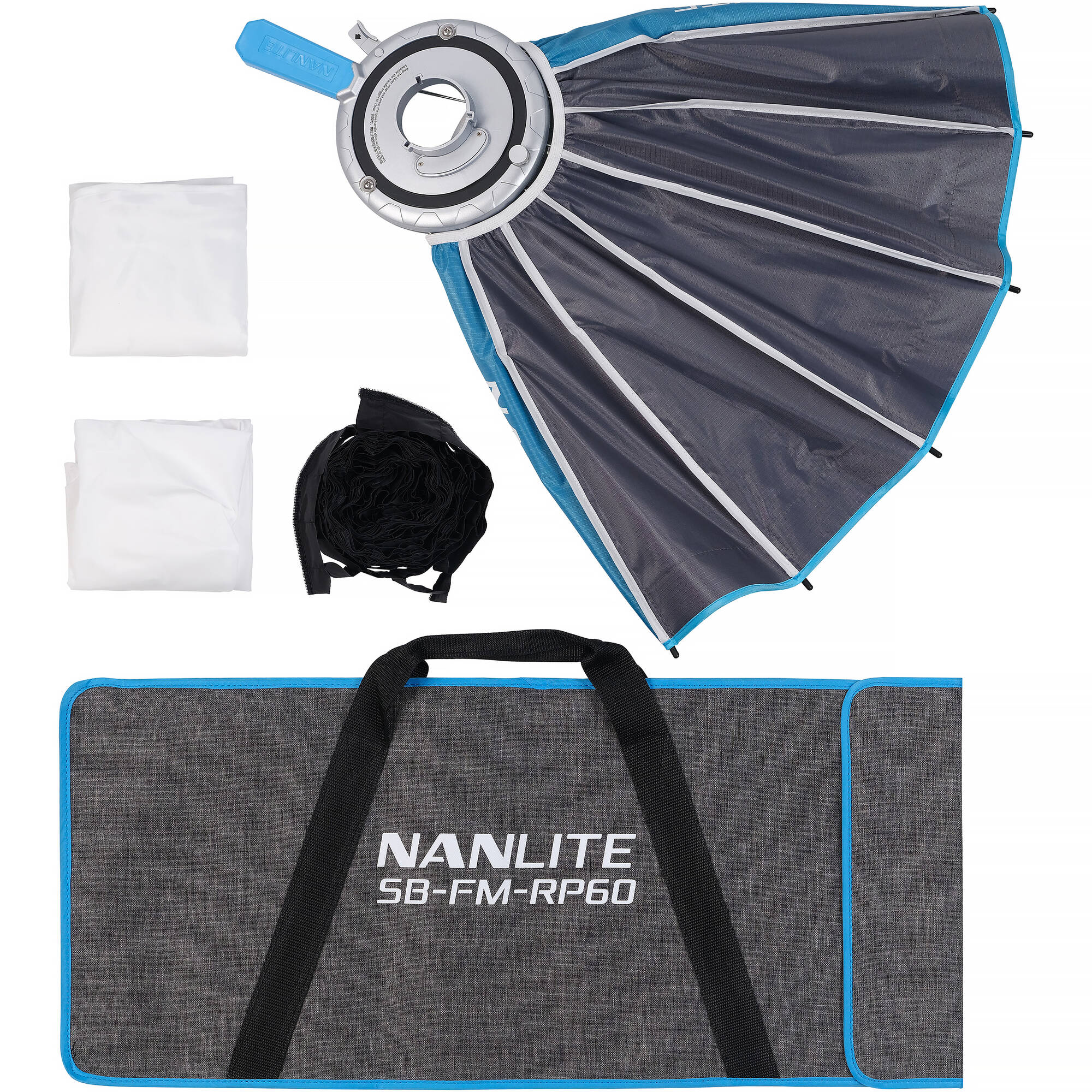 The Nanlite Rapid 60 is a high-quality softbox with a parabolic design that delivers excellent lighting performance and can be fully assembled and disassembled in seconds thanks to its rapid-latch speed ring.
