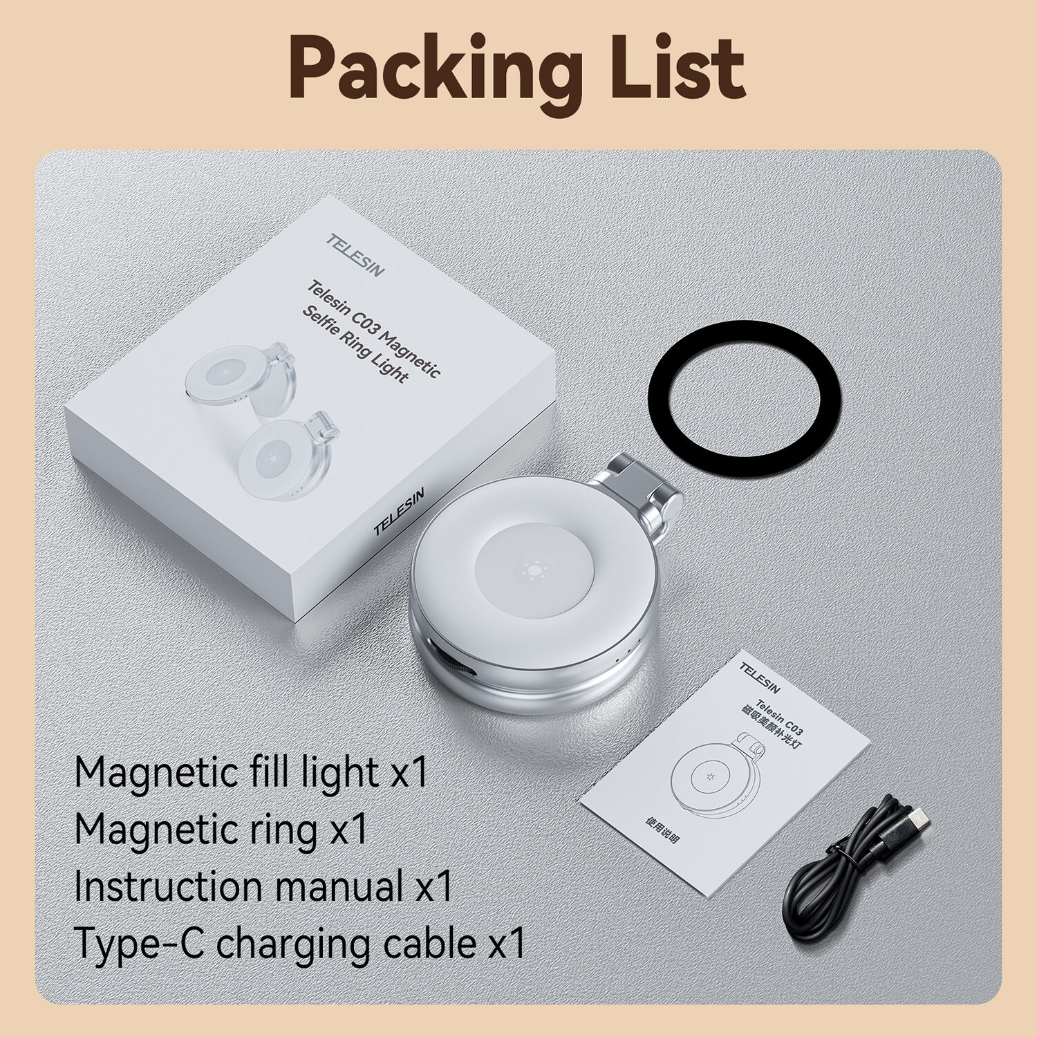 TELESIN Magnetic Selfie Ring Light S5-BGD-01
