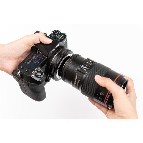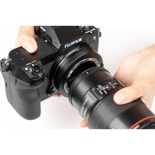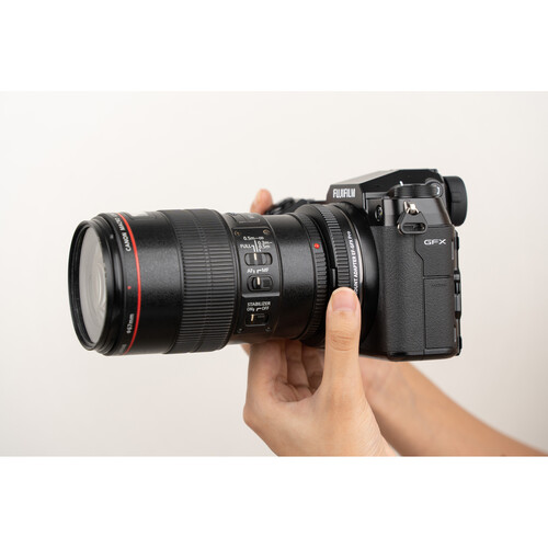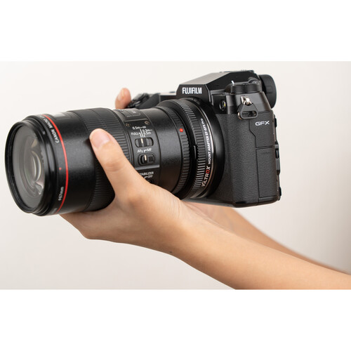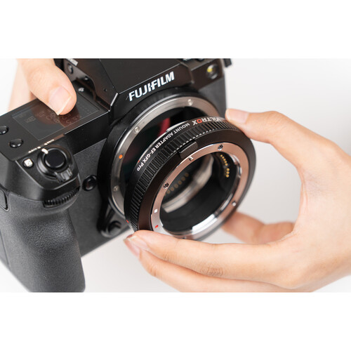 The Viltrox EF-GFX Pro allows you to attach Canon EF/EF-S-mount lenses to FUJIFILM G-mount cameras with full electronic communication. An upgraded version of the original Viltrox EF-GFX adapter, the EF-GFX Pro adds an aperture ring, supports stabilization, and allows you to change focus mode from auto to manual. Autofocus is also faster and more stable. The firmware update port has also been changed from micro-USB to USB-C. Additionally, after power is turned off, the previous settings can be saved on the EF-GFX Pro.
