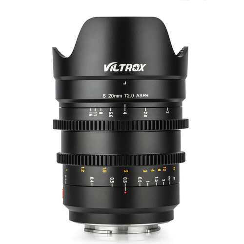 Offering a broad field of view and bright design, the S 20mm T2.0 Cine Lens from Viltrox is an ultra-wide prime lens for full-frame, Sony E-mount mirrorless cameras. The wide-angle design and fast T2.0 maximum aperture make it well suited to astrophotography use, as well as landscape, interior, and architectural shooting. Its standard 0.8 MOD cine-style gears allow you to operate the focus and iris using standard cine equipment.
