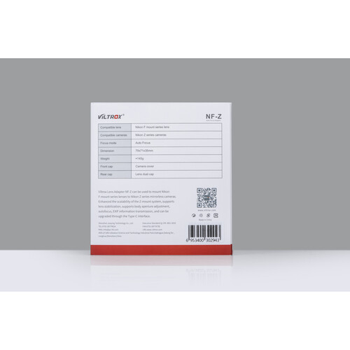 The Nikon F-Mount Lens to Z-Mount Camera Adapter from Viltrox expands your lens options by supporting the wide range of F-mount lenses available from Nikon. The adapter lets you attach F-mount lenses to Z-mount cameras such as the Nikon Z7 II. Featuring a motor-driven iris and a gear box, the adapter supports high speed auto focus. It also supports Exif transmission and VR lens stabilization.