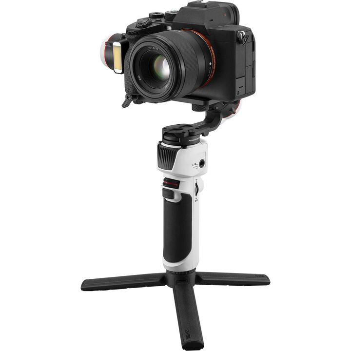Over built-in Wi-Fi, the gimbal can sync up with a Wi-Fi-enabled camera that supports remote zoom, shutter, and video start/stop control, or you can utilize a camera control cable and the USB Type-C port on the baseplate to control the camera shutter and also power the camera. Over built-in Bluetooth, the camera syncs up with a free-download ZY Play mobile app for iOS and Android for additional capabilities. The app provides remote control over many functions of the gimbal and has filmmaking features such as time-lapse, panorama, and slow-motion capture. The integrated LED light allows you to utilize a fill light for your subject without the requirement of external lights.